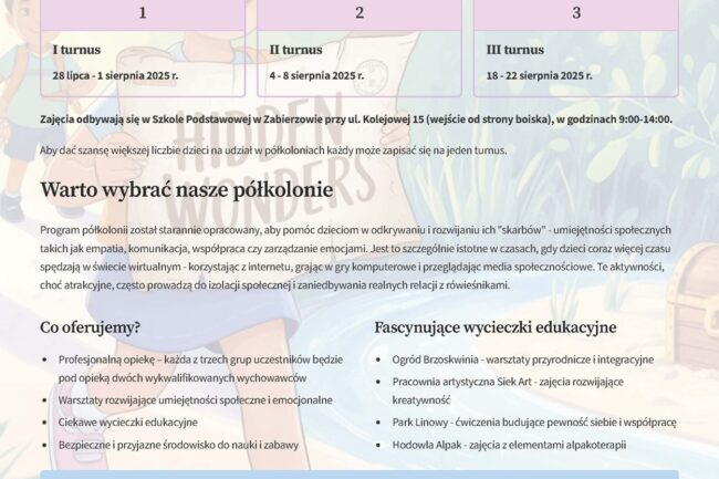 Zapraszamy na Półkolonie „Poszukiwacze skarbów – mapa dobrych relacji” w Gminie Zabierzów!